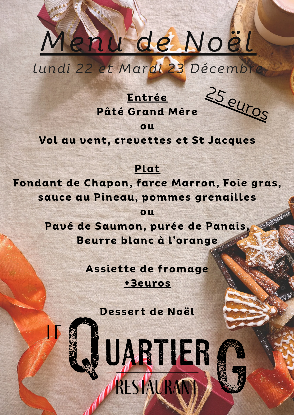 CALL +330545396766Bienvenue au QuartierG. Hélène et Jérôme vous accueillent dans leur établissement et vous proposent une cuisine faite maison, généreuse avec des produits locaux. Profitez du déjeuner et du dîner dans une ambiance détendue et conviviale en salle ou en terrasse